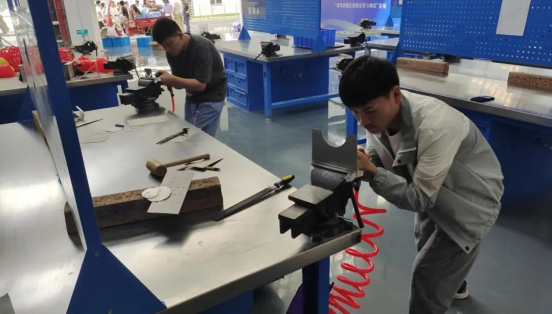飞机发动机拆装调试与维修赛项是三人团队赛,共有三个模块。每一个模块都需要无比默契的配合,考验团队间的相互信任。特别是在飞机铆装结构修理板块,一位同学的尺寸加工失误,可能就会导致整个加工零件的失败。这也是和真实的飞机维修环境所对应的,航空维修中一个螺丝钉的松动都可能会导致大问题。因此,在备赛中,老师会要求同学们同进同出训练场,经常在一起吃饭、跑步,甚至放松打游戏,为的就是培养团队之间的默契度,只有相互信任,团队成员能知道彼此优缺点,才能发挥自己的优势主动弥补。