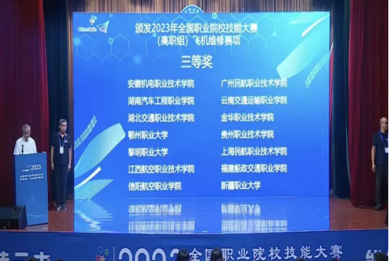 2023年8月20日,全国职业院校技能大赛飞机维修赛项在成都航空职业技术学院举行,本次比赛共有来自全国的47支代表队同台竞技。经过3天的激烈角逐,在我校航空学院老师张庆、丁当的悉心指导下,由李顾、徐龙马、高旭3名学生组成的参赛队荣获三等奖。