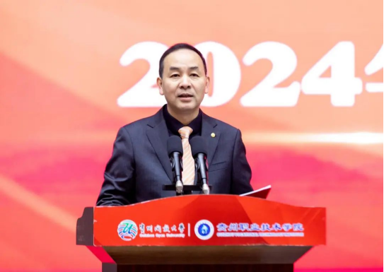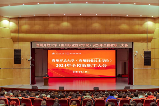 汤健回顾了2023年学校各项工作,并对2024年工作进行总体安排部署。他指出,2023年我们坚持以高质量发展统揽全局,主动服务和对接主战略主定位,大力推进“党建工作提质增效、开放教育提质增量、职业教育提质创优、继续教育提质扩面”四大战略,推动全校各项事业发展取得明显成效。2024年,全体教职工要按照一体两翼三融合四提升五行动六工程“123456”工作思路,紧密围绕重点工作、重点任务,以团结奋斗之姿,以只争朝夕之劲,坚决向着新目标奋楫再出发,为加快建成贵州有特色、全国有影响的新型高质量本科大学接续奋斗。