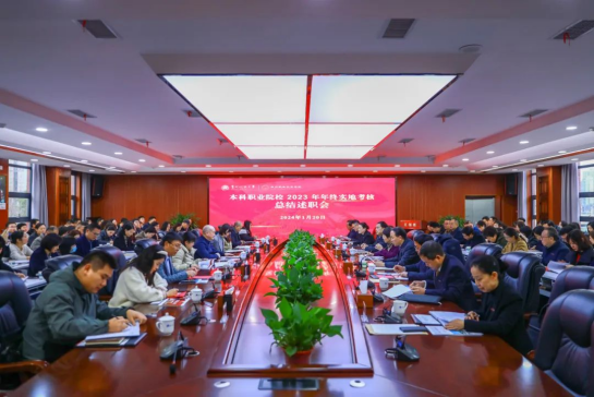 1月20日,省高校考核办本科职业院校2023年年终实地考核第一考核组莅临我校开展实地考核工作。考核组组长、省政协科教卫体委员会副主任、贵州财经大学原党委书记刘雷及考核组成员,校领导班子成员、近年退出领导岗位的校级领导、中层领导干部、基层党员干部群众代表等参加,会议由校党委副书记、校长汤健主持,校党委书记令狐彩桃代表班子作总结述职报告。