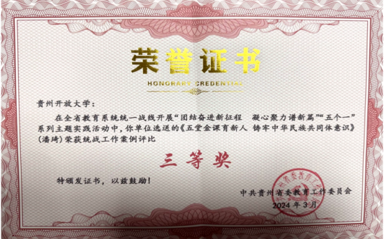 学校党委历来高度重视统战工作,充分发挥大统战工作格局效能,不断激励党外人士与学校党委在思想上同心同德、目标上同心同向、行动上同心同行。党委统战部以目标为导向强化责任落实,完善考核机制;以效果为导向创新理论实践形式,加大宣传力度;以特色为导向,凝练深化“书香统战”“智汇统战”“连心统战”“建功统战”四大品牌。近年来,在各基层党委、各民主党派基层组织、无党派人士、统战团体的共同努力下,学校在统战理论研究、统战基层组织建设、参政议政、建言献策等工作方面不断取得新突破,得到了省政协、省委统战部、省教育工委领导的充分肯定:在2023年省委教育工委主办的“同心跟党走 奋进新征程”“五个一”系列主题实践活动中,学校获奖名次及数量位居全省高职院校首位、省属本科院校前列;九三学社贵州开放大学支社荣获九三学社贵州省委2023年度省直基层组织规范化建设先进集体三等奖;省政协委员陈舒提交的《加快本科层次职业教育建设 助推贵州高质量发展》提案获得省政协立案,致公党党员周宇仁提交的《优化跨境电商产业结构 实现外贸新业态良性循环》提案获得省政协立案并获省领导领衔督办。