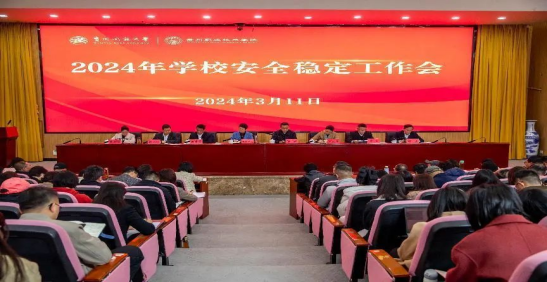 3月11日,我校召开2024年安全稳定工作会议,对当前安全稳定工作进行分析研判,并对2024年学校安全稳定工作进行安排部署。各部门主要负责人、各学院党政负责人、分管安全的党委委员、团总支书记、辅导员、教研室主任,保卫工作部、学生工作部、后勤处全体教职工,物业公司、保安公司、食堂经营公司负责人参加会议。全体校领导出席会议。会议由党委副书记、校长汤健主持。