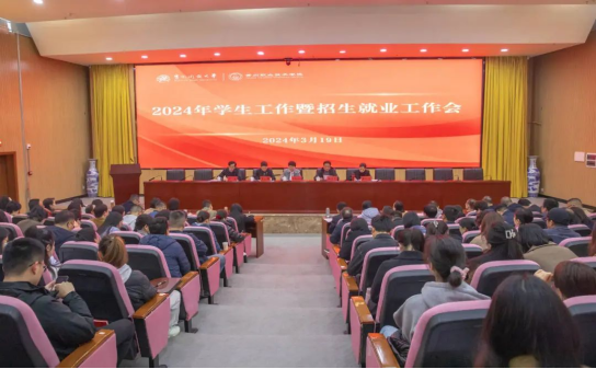 为深入学习贯彻习近平新时代中国特色社会主义思想和党的二十大精神,贯彻落实习近平总书记关于教育的重要论述,3月19日,学校2024年学生工作会暨招生就业工作会在行政楼9楼会议室举行。校党委书记令狐彩桃,党委委员、纪委书记骆最勇,党委委员、副校长于立群、党委委员、组织部部长张仁俊,党委委员、宣传部部长、统战部部长何滨出席会议,学校副处级以上干部、学工部、保卫部、招就中心工作人员及全体辅导员参加会议。会议由学校党委委员、纪委书记骆最勇主持。