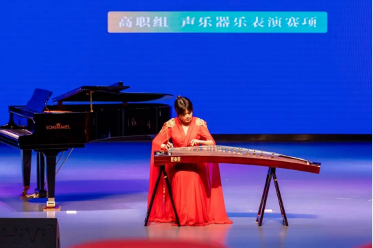 声乐、器乐表演(高职组)赛项的选手比拼声乐、键盘和民族器乐表演,以及视唱与艺术素养。参赛选手纷纷拿出了自己的看家本领,在舞台上纵情高歌,比赛现场余音绕梁,激情澎湃。