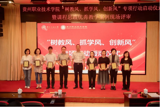 接着,进行“树教风、抓学风、创新风”专项行动授牌仪式,汤健为各学院(部)行动分队授牌。