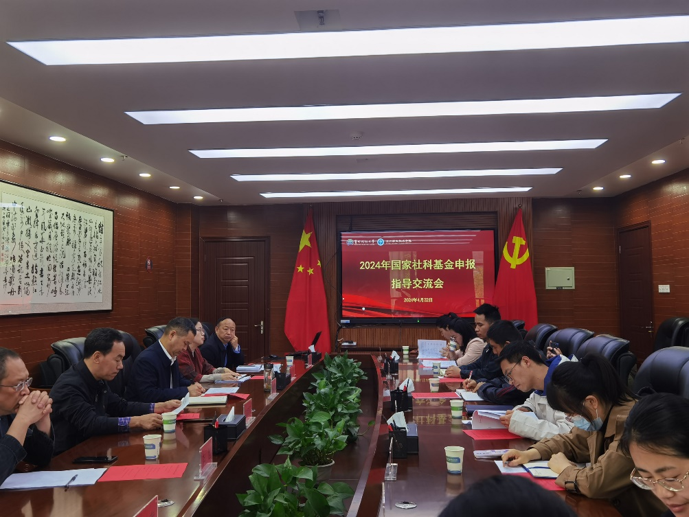 为进一步推进东西部协作行动计划,加强校际交流协作,落实学校与广东开放大学(广东理工职业学院)签订的《校际帮扶合作协议》,做好2024年度国家社会科学基金项目申报工作,提升国家社科基金项目申报质量,夯实国家社科基金项目申报基础,2024年4月22日上午,学校2024年国家社科基金指导交流会在云潭南路校区六楼会议室召开,特邀广东开放大学刘忠权教授进行指导、交流,2024年国家社科基金申请人及部分课题组成员参加了会议,学校党委委员、副校长林长松出席会议,会议由科研处处长陈舒主持。