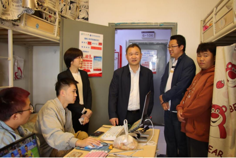 午餐结束后,林长松深入学生宿舍,问候并关注学生日常生活,认真为同学们答疑解惑、解决困难。在调研过程中,他对学院学生工作提出要求,强调要以生为本,继续深入实施学院阳光系列文化建设和思政工作,持续打造“36.5℃温暖工程”,切实抓好包括寝室为重点的一站式社区服务管理,切实关注同学们的心理健康和学习生活。他叮嘱学生要多锻炼身体,注重劳逸结合,养成良好的学习和生活习惯,增强安全意识,加强沟通交流。