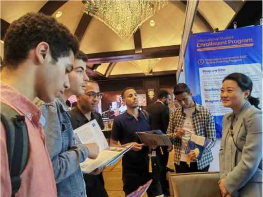 迪拜国际教育展和埃及“留学中国”说明会受到了阿联酋与埃及两国学生、家长的广泛关注。我校代表团积极向前来咨询的学生、家长及部分高校负责人介绍我校的基本情况、学校优势,并解读了学校“中文+职业技能”线上培训项目国际学生招生政策。展会期间,共百余人次前来我校展区咨询、交流,部分参展的学生对我校开展的“中文+职业技能”线上培训项目很感兴趣,达成了初步学习意向。我校与多所高校就学生交流、中文培训项目达成了初步交流合作意向。