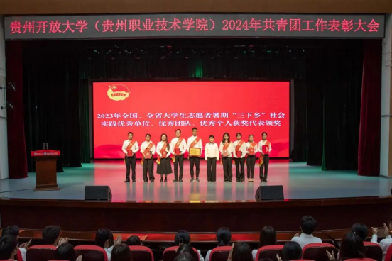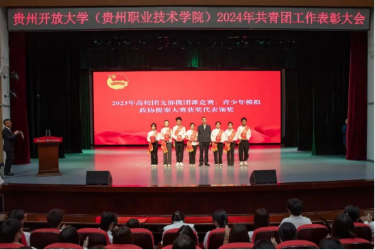 2024年5月14日,贵州开放大学(贵州职业技术学院)共青团工作表彰大会在学校大礼堂召开。学校党委书记令狐彩桃、党委副书记、校长汤健、党委委员、副校长林长松、周勇出席大会,学校相关部门负责人、青年教师代表、全体新团员及青年学生代表参加表彰大会,会议由校党委委员、副校长周勇主持。