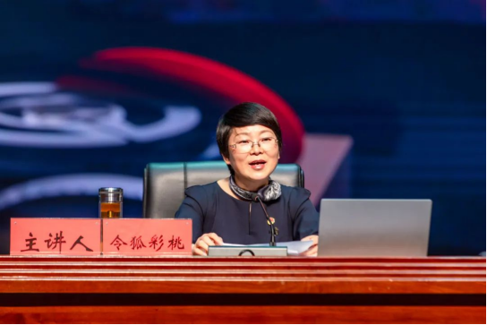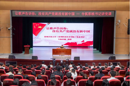 2024年5月21日下午,学校党委书记令狐彩桃在学校大礼堂为全校800余名入党积极分子、发展对象讲授题为《让歌声告诉你:没有共产党就没有新中国》的党课。