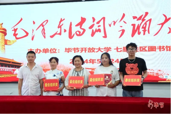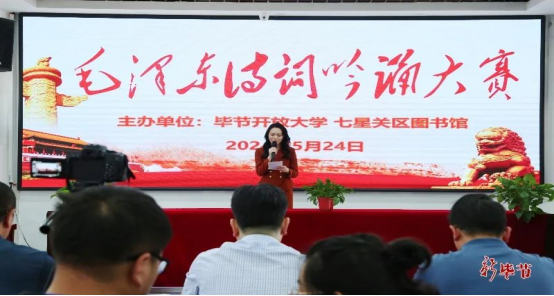 5月24日,由毕节开放大学、七星关区图书馆联合举办的2024年度“毛泽东诗词吟诵比赛”在该区图书馆举行。