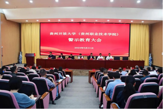 5月31日上午,贵州开放大学(贵州职业技术学院)在云潭南路校区行政楼九楼会议室召开警示教育大会。会议深入学习贯彻习近平总书记关于全面加强党的纪律建设的重要论述和关于党纪学习教育的重要讲话精神,落实党中央和省委关于开展党纪学习教育的部署要求,通报省纪委省监委查处的违纪违法典型案例,以案说德、以案说纪、以案说法、以案说责,教育引导党员、干部自觉学纪、知纪、明纪、守纪,推动党纪学习教育走深走实,持续筑牢拒腐防变思想防线。会议由学校党委书记令狐彩桃主持。学校全体校领导,副处级以上干部、新提拔干部、年轻干部、关键岗位干部及离退休干部代表共50余人参加会议。