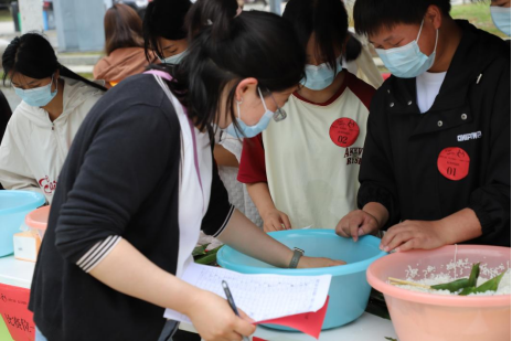 学院教师受邀担任赛事裁判,对各个“粽”队在10分钟之内完成的粽子数量、粽子美观和团队协作情况进行评分。