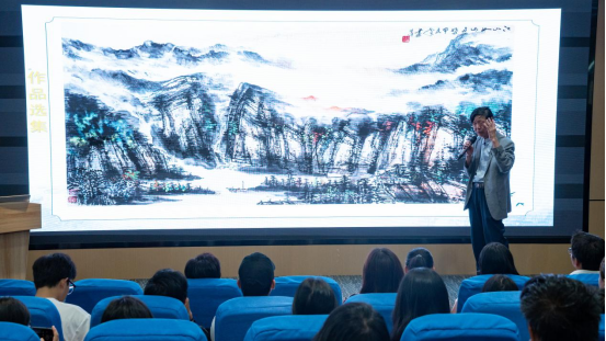 谢忠义老师从媒体与新媒体的区别、如何坚持正确的舆论导向、新媒体内容创造与传播策略和师生进行交流分享;魏建军老师结合个人创作经验,从山水画的构图、创作布局、绘画技法、国画与品牌设计等几个方面进行了详细的讲解。讲座以丰富有质感的内容、朴素接地气的语言,受到现场师生的好评。