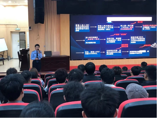 为有效强化我校学生防诈意识,提升反诈能力,进一步深化警校联动工作机制,2024年10月22日,我校邀请贵州省反诈中心三级高级警长张剑梅同志到校联合开展防范电信网络诈骗系列教育培训活动。学校班级安全委员、反诈社团成员及部分学生代表400余人参加专题讲座培训、观看反诈节目表演和安全教育观影等系列活动。