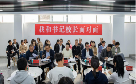 为深入学习贯彻落实习近平总书记关于教育的重要论述,营造倾听学生心声、关心学生成长、促进学校发展的良好氛围,打通“一站式”学生社区服务学生的“最后一公里”,11月7日下午,学校在学生事务中心举办本学年“我和书记校长面对面”活动第三期。学校党委书记令狐彩桃、党委副书记罗玲龙、党委学工部、教务处、后勤处、保卫部、招就中心、团委、图书馆、各二级学院负责同志及各学院学生代表40余人参加,活动由学工部主持。