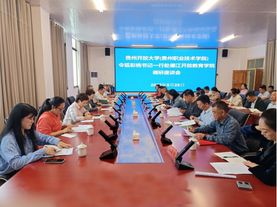 5月28日,党委书记令狐彩桃率队赴德江县对德江开放教育学院开展调研,德江县人大常委会副主任陈琳、县教育局领导班子、铜仁开放大学校长张成勇出席调研座谈会,会议由德江县人大常委会副主任陈琳主持。党政办公室、开放教育事业部、党委组织部、马克思主义学院、信息工程学院相关人员陪同调研。