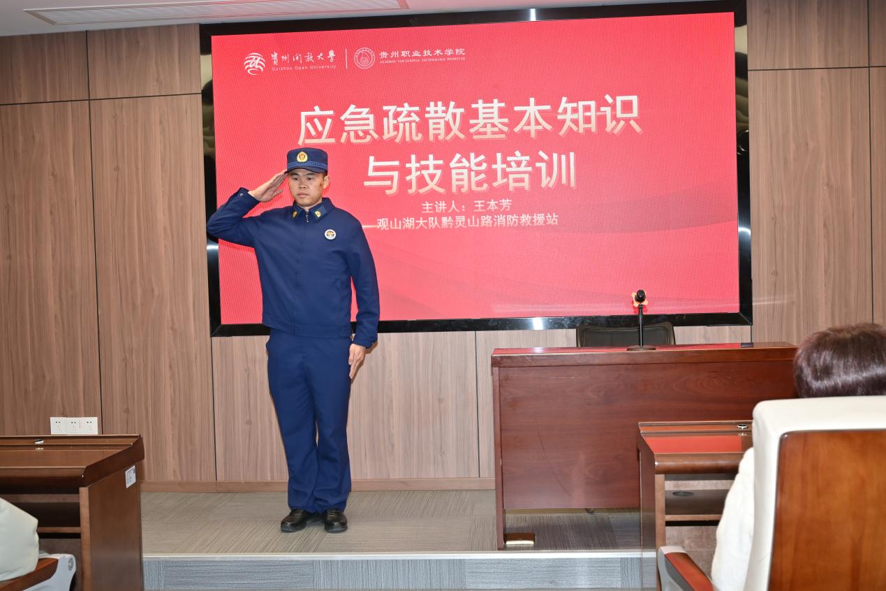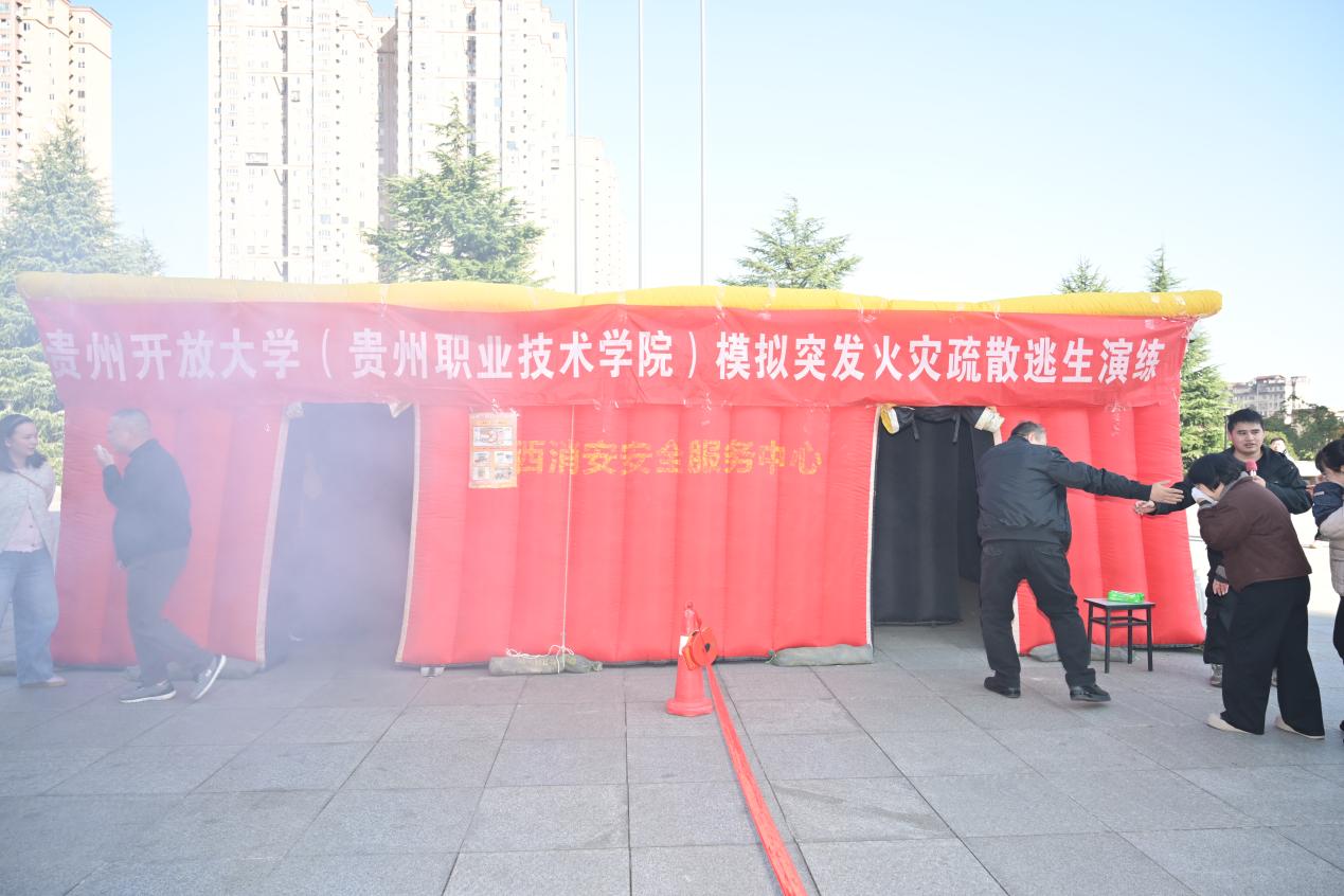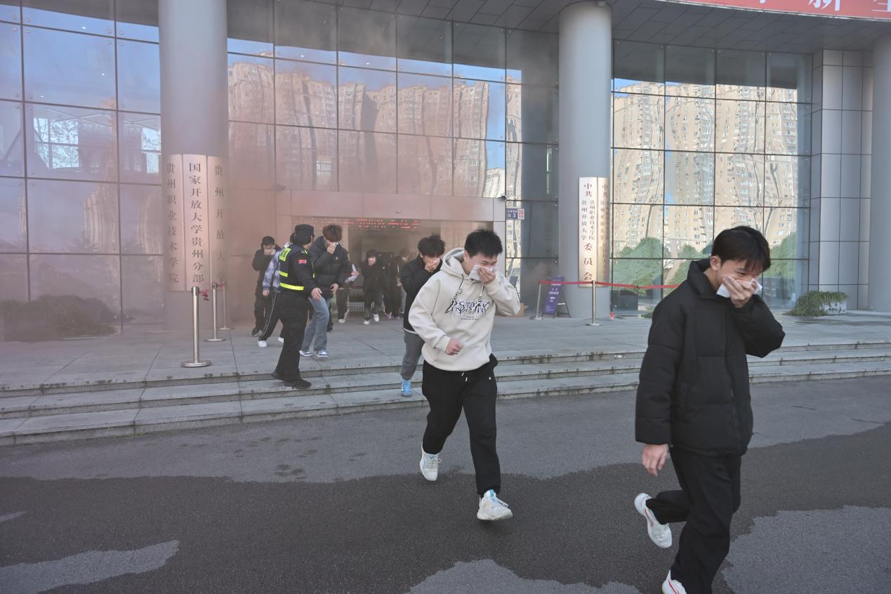 2025年11月25日下午,我校举行2025年秋季学期消防应急疏散演练活动。观山湖区消防大队消防队员应邀莅临我校进行了专业培训。行政楼相关部门教职工及上课师生约500人参与此次活动,校党委书记令狐彩桃到场指导。