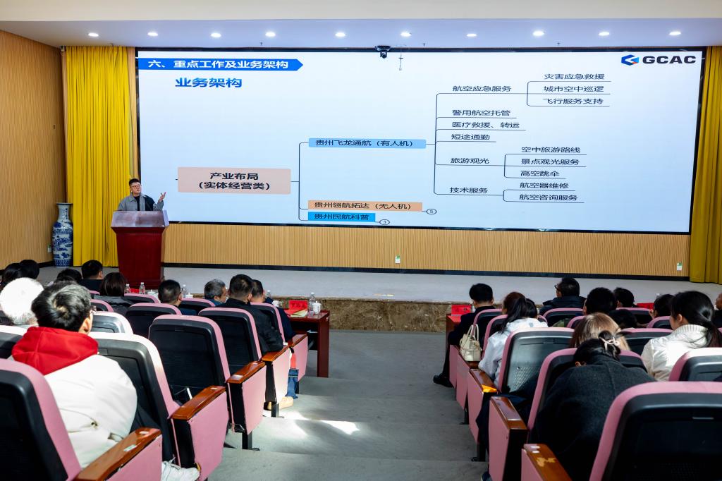 专题讲座中,贵州民航低空经济发展有限公司总负责人何伟阐释了低空经济与民航协同发展,剖析了贵州省发展低空经济的重点产业布局。中国民用航空飞行学院副教授王学林围绕“谁需要?需要谁?谁提供?”解读了民航职业教育面临的核心问题。
