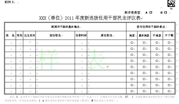XXX(单位)2011年度新选拔任用干部民主评议表