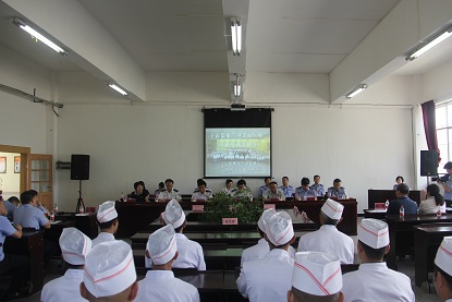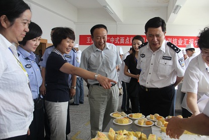 贵州广播电视大学继续教育学院(以下简称“贵州电大继教院”在贵州省王武监狱为服刑人员举办的“中式面点师(初级)”职业技能培训班于6月17日顺利结束,为检验学员的学习效果,6月18日上午,贵州电大继教院与贵州省王武监狱共同举办了“中式面点师”结业汇报会。贵州省司法厅王学军副厅长、贵州电大纪委书记郭万才、贵州省监狱管理局何川副局长、贵州省王武监狱杨滨副监狱长及省司法厅、省监狱局、省王武监狱相关部门同志和本期“中式面点师(初级)”全体学员共百余人参加汇报会。此外,还特邀中式面点师高级技师、国家职业鉴定高级考评员黄奇芳、贵州饭店西点大厨、国家职业鉴定高级考评员陈龙作为评委参加本次活动。