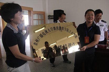 在汇报会上,省司法厅为贵州电大继教院王武监狱职业技能培训点进行了授牌。最后,各位领导为获奖学员颁发了证书及奖金。本次汇报会取得了预期的实效,达到了目的,为本次职业技能培训工作圆满地画上了句号。