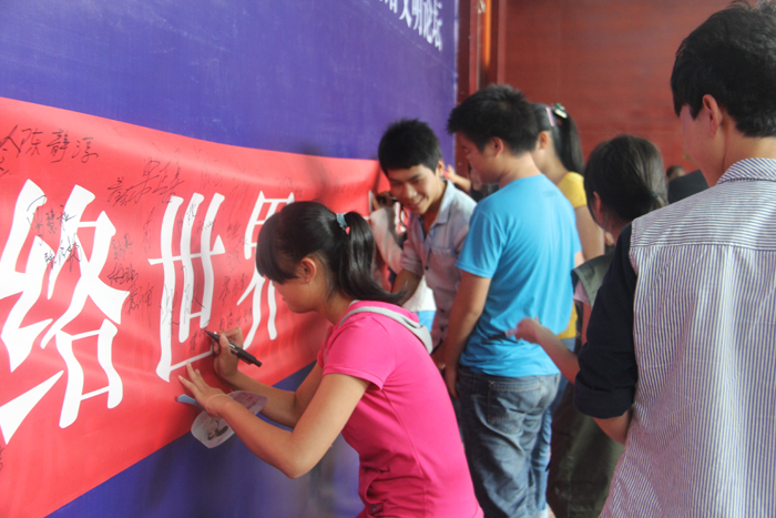 论坛结束后,全体参会人员在“网络世界,文明同行”的横幅上签名,表示将以自己的实际行动为推进网络文明建设作出贡献。