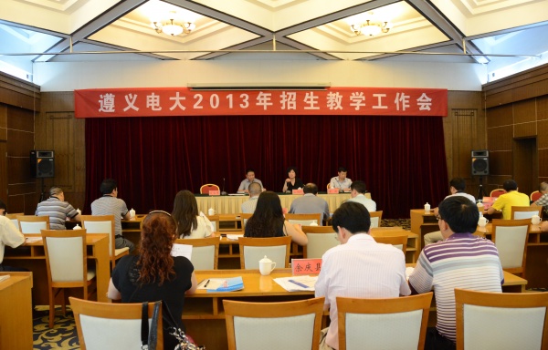 7月9日上午,我市电大系统2013年招生教学工作会在遵召开。我校党委书记主鹤群,党委副书记、校长胡大力,副校长朱健,各县(市)工作站的主要负责人、业务工作人员,分校全体中层干部等四十余人参加了会议。