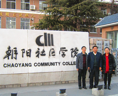 2013年11月20日下午,贵阳电大校长刘衍丽、副校长李军一行来到北京朝阳社区学院参观学习。朝阳社区学院马院长介绍了学校教育办学的具体情况。朝阳社区学院是1999年9月经北京市教委批复,朝阳区政府在区职工大学的基础上整合朝阳师范学校和市电大朝阳分校的教育资源而成立的北京市第一家社区学院。朝阳区作为城市核心拓展区肩负着实现农村城市化、城市现代化、区域国际化等重任,朝阳社区学院从实际区情出发,以学历教育为基础,非学历教育为重点,社区教育为特色,将社区学院打造成全国示范性社区学院,成为我国社区教育的典范。
