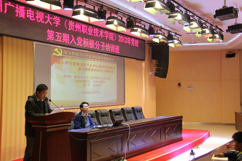 为进一步加强我校学生入党积极分子队伍建设,切实做好“早选苗、早教育、早培养、早发展”工作,保证大学生党员队伍质量,根据学校2013年党建工作安排,经过学校党委组织部精心准备,我校第五期入党积极分子培训班开班典礼于11月29日在贵州职业技术学院图书馆报告厅隆重举行,学校组织部部长、党校副校长、副教授徐伟出席了开班典礼,并为本期培训班作动员讲话,组织部副科级秘书安战全和323名入党积极分子参加了开班典礼。