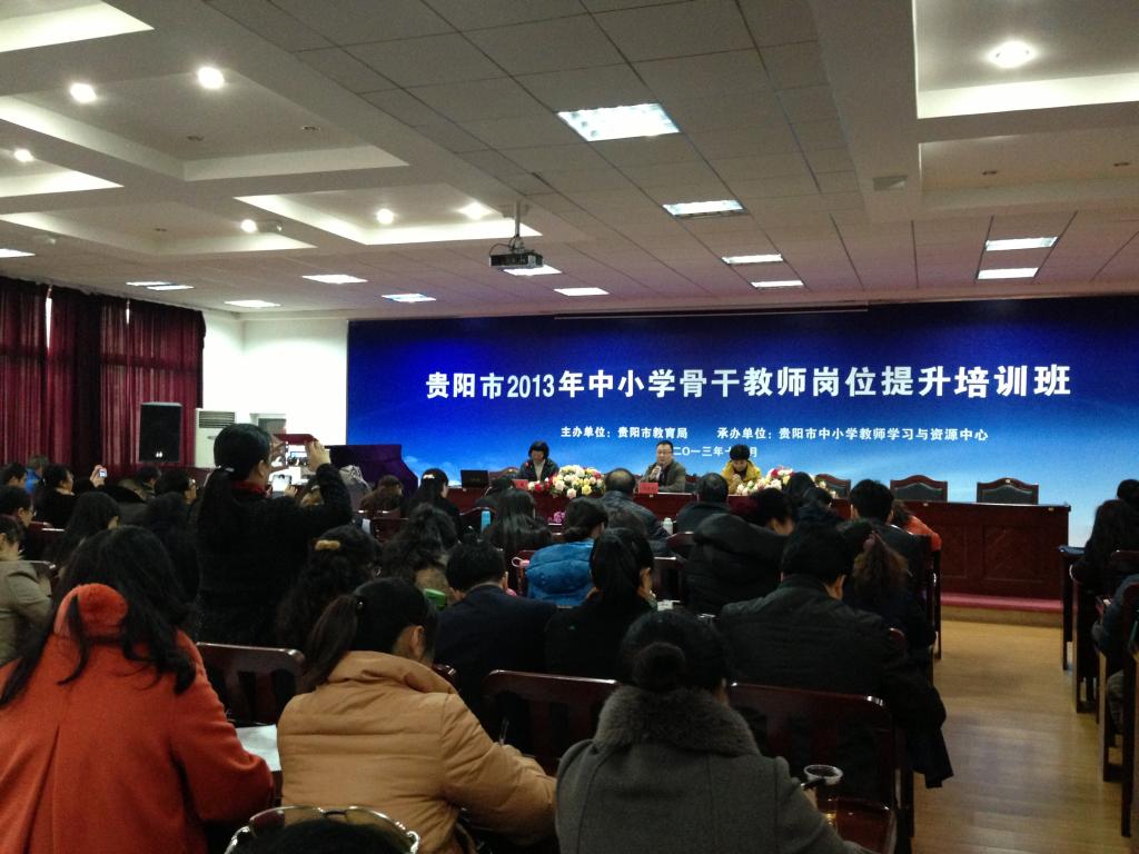 此次活动的举行是贵阳市2013年中小学骨干教师岗位提升集中培训学习的延续。贵阳市教育局为充分发挥重新考核认定的“十一五”市级骨干教师在教育教学和教研等方面的示范作用,进一步提高实施素质教育的能力,在2013年11月26日--29日,举办了贵阳市中小学骨干教师岗位提升培训班。本次骨干教师岗位提升集中培训邀请到了上海心理协会基础教育专业委员会秘书长,华东师范大学特聘资深心理咨询师陈默老师;上海市普陀区教育学院科研室主任、特级教师、全国学习科学研究会理事,全国中青年教育理论工作研究会会员祝庆东老师;上海市虹口区教育学院常务副院长,曾任上海市建平世纪中学校长马骉老师等三位上海专家为全体骨干教师做了六场专题培训。通过各位专家深入浅出的讲解、栩栩如生的演示、理论与实践的结合,引经据典、旁征博引,使参训教师在师德修养、心理素质、教育理论水平,教育教学能力及教育科研能力等方面得到了整体的提高,达到了更新思想素质、业务能力和教育观念的基本要求。