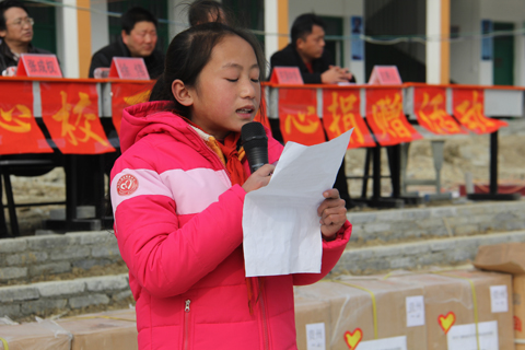 从江县往洞镇中心小学学生代表说到滴水之恩,当涌泉相报,他们只有更加发愤学习,加倍努力,才能不辜负社会各界的关心,以后争取走出大山,学习更多知识来回报社会。