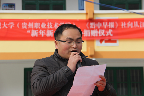 为了让贫困山区的儿童过上一个温暖的寒冬,在辞旧迎新之际,我校和《黔中早报》社共同开展了“新年新衣”爱心捐赠活动。本次捐赠活动得到了学校领导和当地党委政府的高度重视,学校党委委员、纪委书记郭万才,党委组织部部长徐伟,从江县政协副主席韦贵兴以及从江县往洞镇全体领导出席了本次捐赠活动。学校教师代表以及从江县往洞镇中心小学全体师生参加了捐赠活动。