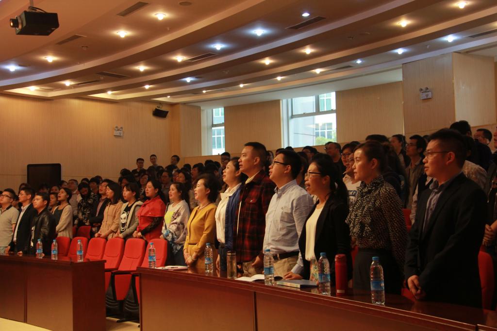 5月17日下午,由校工会与教务处、学生处共同组织的“明礼知耻﹒崇德向善在校园”主题活动启动仪式在我校图书馆二楼报告厅隆重举行。我校党委书记邓惠宾、党委副书记袁仁庆、党委副书记郭万才、教务处处长赵霖、副处长杨家兴、学生处处长、团委书记陈鹰、工会主席周吉萍出席了启动仪式,各学院、各部门35岁以下的教职工代表参加了当天的活动。