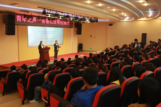 讲座开始前,主持人对团省委徐书记和学校郭书记进行了采访,就高校防艾宣传等问题进行了探讨。随后,由省疾控中心申莉梅老师、全省艾滋病预治专家姚永明从专业视角为同学们进行防艾讲座。讲座介绍了我国艾滋病的流行现状、艾滋病的危害、传播途经和我们如何正确对待身边的艾滋病患者等。讲座生动形象、通俗易懂,让大家对艾滋病的流行趋势,预防措施有了更加全面和深刻的认识。活动尾声老师和同学们展开了问答环节,同学们都积极抢答