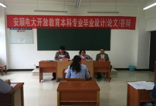 2016年6月5日上午,在安顺电大新校区顺利举行了2014秋季本科毕业生论文答辩。此次答辩工作校领导高度重视,成立了答辩工作领导小组和答辩工作委员会,由电大党总支书记、校长徐敏担任组长,副校长金惠琼担任副组长,统筹指导答辩工作。教务科严格按照省校对答辩环节各项工作的要求,对论文答辩的整个过程进行了精心计划和妥善安排。