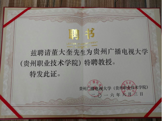 基于董大奎教授在职教领域的突出贡献,以及在学术上取得的丰硕成果,我校决定聘请董大奎教授为特聘教授。校党委书记邓惠宾在仪式上给教育部职教专家、同济大学高等技术学院原常务副院长董大奎教授颁发了特聘教授证书,同时董教授把自己在教育、学术领域的研究成果、教学资源文本赠送给我校,校党委副书记、校长李皖代表学校接受董教授的赠予。董大奎教授的加入,我校将会在人才培养模式改革、人才质量提升工程等方面登上新台阶,创造新辉煌!