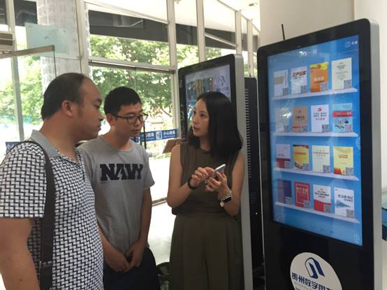 参观学习过程中,贵州省图书馆副馆长刘梅对我校图书馆信息化建设方案提出了建设性意见,网络数字服务中心主任罗静,技术部主任蔡珩为我校图书馆技术人员介绍了RFID自助借还系统、读报系统性能、特点,并进行了操作示范。