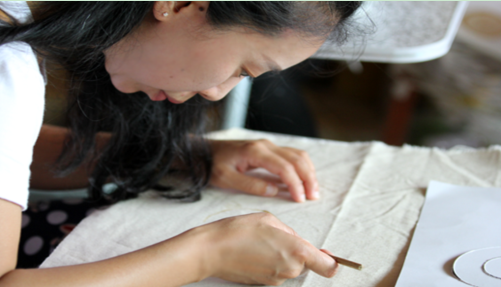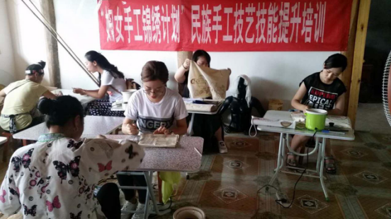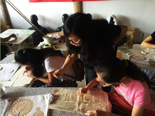 培训过程中,由贵州蜡染传承人张世秀向我们介绍了蜡染工艺的基本步骤并对我们的老师进行了的蜡染培训,本次培训老师们学会了画蜡、封蜡、染色、脱蜡等技术,并对民族图案寓意又有了新的认识,均表示兴趣浓厚受益匪浅,每位老师培训过程中都很好地完成了自己的蜡染作品。