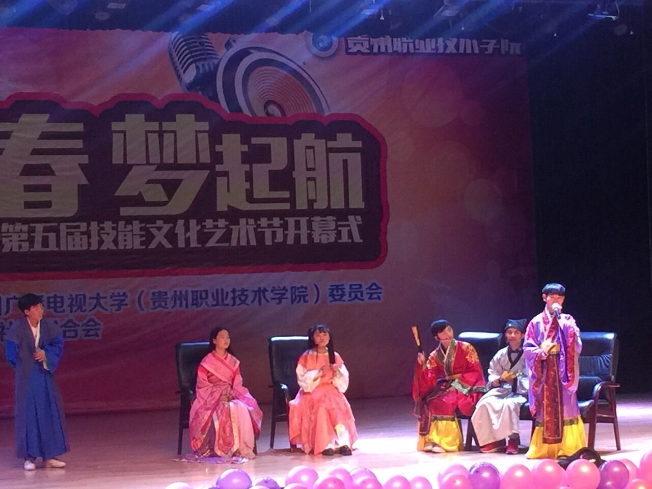 10月20日晚上7点,贵州广播电视大学(贵州职业技术学院)2016迎新晚会暨第五届大学生技能文化艺术节开幕式在学校礼堂隆重举行。晚会由校团委主办、校学生会、社团联合会承办,团委书记陈鹰、各学院老师及学生代表800余人参加本次活动。