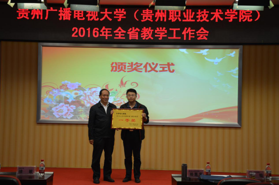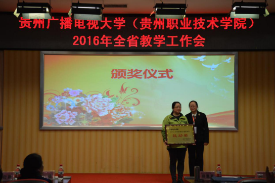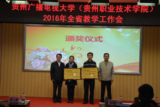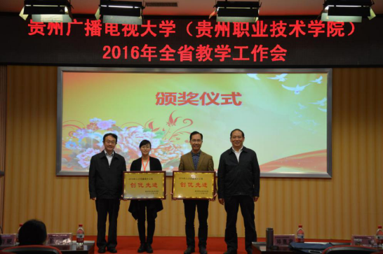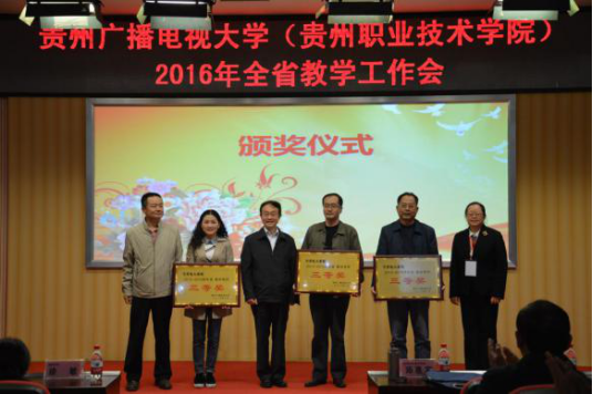 在会议的颁奖仪式上,表彰2015-2016学年度全省电大教学考评中获奖的分校和在人才质量提升工程创优先进评比中获奖的二级学院。