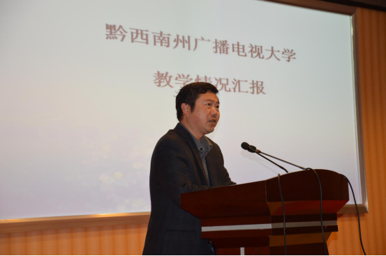 创开办主任余萍、教学部副主任程守艳、质量办主任张涤、教务处副处长杨家兴、教务处副处长马婷婷分别作了题为《贵州开放大学建设情况介绍》、《网上教学资源建设及应用情况介绍》、《教学质量保障体系建设及教学督导工作情况汇报》、《教务、学籍管理主要问题改革措施》、《上学期考试情况总结及本学期考试工作安排》的报告,对今后教学工作提出了建设性措施。