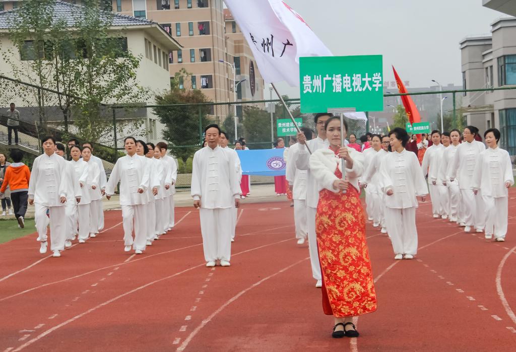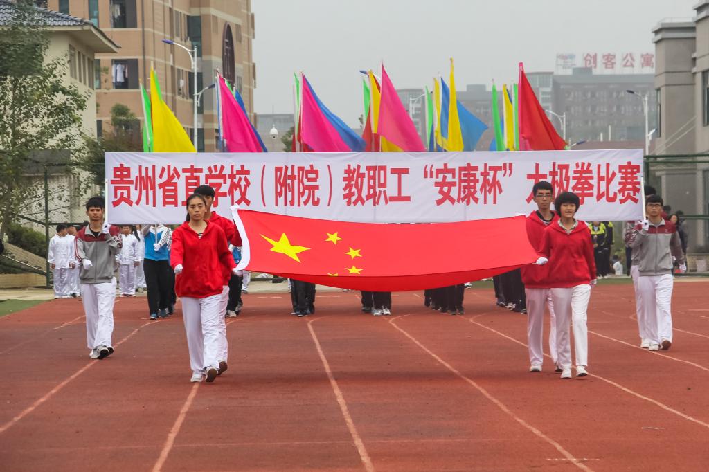 开幕式上,贵阳中医学院的彩旗队、彩扇队、啦啦操队、武术队为大家带来了精彩的表演。随着主持人宣布运动员入场,伴着激昂的“运动员进行曲”,来自各高校(附院)代表队的运动员们身穿整齐的服装,迈着坚定的步伐步入运动场。比赛中,各支代表队都将自己的最好水平展示出来,将太极拳以柔克刚、刚柔并济、急缓相间、行云流水的拳术风格淋漓尽致展现在大家眼前。