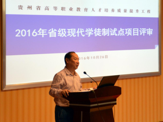 2016年10月26日,贵州省高等职业教育人才培养质量提升工程2016年省级现代学徒制试点项目现场评审在我校举行。本次进入现场答辩的现代学徒制试点项目,是由贵州省各职业院校通过校内评审推荐,经过教育厅专家组材料评审环节后公示入围的13个现代学徒制试点项目。
