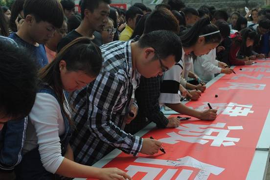 随后,受资助学生代表庄严在领誓人的带领下庄严宣誓,同学们铿锵有力的誓言充分展现了我校学子良好的精神风貌和今后报效祖国的决心。宣誓完毕后举行了诚信签字仪式并合影留念。