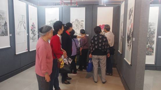 活动当天,离退休工作处组织老年大学书画班全体学员参加本次联展开幕式,之后来到美术馆进行参观。老同志们专心细致地浏览每一件展品,拿自己的作品和其他高校老同志的进行比较,认真揣摩,相互交流。我校退休老教授戴世伦作为联展顾问,现场引领大家参观,对作品作出耐心、精彩的点评,老同志们纷纷表示通过展览,能够找出差距,还能吸收很多创作技能方面的知识,感觉收获良多。