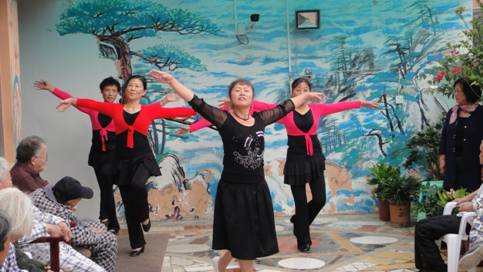 伴随着大合唱《唱支山歌给党听》,慰问演出正式拉开序幕。铿锵有力的京剧表演《沙家浜》选段,曼妙多姿的歌伴舞《草原的月亮》,韵味悠长的《雁荡谣》,优美动听的独唱《小会计》等精彩的节目一一登场。参加表演的演员大部分都是我校退休职工,虽然她们自己也是六十来岁接近七十岁的老同志,但依然精神饱满,不遗余力的唱好每一句歌词,做好每一个动作,忘我地投入到为敬老院老年朋友慰问表演当中。演出中途,敬老院里一位年过七旬的老人自告奋勇为大家清唱了一曲《社会主义好》,虽然声音略显沙哑,但神情专注,真情实感,让人感受到老人家对国家、对政府给予关爱帮助的一份感激之情。表演现场时时响起阵阵热烈的掌声,老人们脸上洋溢着幸福感动的表情,处处弥漫着欢乐祥和的气氛。