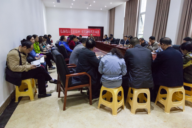 党委书记邓惠宾同志主持交流讨论并作了总结讲话。他首先传达了“习近平总书记纪念红军长征胜利80周年大会讲话”的精神,之后结合参观学习他特别谈到:参观猴场会议旧址,重温红色历程,身临其境,触及思想,震撼心灵。弘扬长征精神,最重要的是弘扬革命传统,传承红色基因,学习精神实质,领会丰富内涵,主动对标践行,内化于心,外化于行;就是要认真学习习近平总书记系列重要讲话精神,不忘初心,继续前行,走好今天的长征路;就是要在各自的岗位上,切实抓好发展第一要务,不放松,用足用好改革开放关键一招,以超常规的举措切实抓好开放大学建设,优质校建设,深化综合改革,办人民满意大学等工作任务,善始善终,善作善成,守住发展底线、纪律底线、安全稳定底线,用改革发展的新成就,续写电大的光荣与梦想;就是要切实担负起从严管党、全面从严治党的主体责任,抓好主业主责,深入推进党风廉政建设和反腐败工作,深入开展“两学一做”学习教育,坚持下大力气营造风清气正的政治生态,把长征精神贯穿到工作的全过程和各项工作中。当前,在深化改革,转型发展,跨越发展中,学校面临诸多的问题和挑战,这些问题和挑战非常突出,任务十分艰巨,到了攻坚阶段,无异于是一次新的长征,面对这些问题与挑战,需要我们敢于负重前行、较真碰硬、勇于面对,以更加昂扬的斗志、更加积极有为的举措,去努力战胜各种困难与挑战。今天学校要实现跨越发展,建设一流新型大学,核心任务是深化改革,改革的关键是创新。要改革创新,需弘扬长征精神,传承革命理想高于天、事业发展重于天、师生利益大于天的精神和品格需要勇于担当的精神。