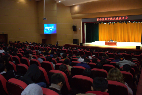 报告会上, 郑传楼教授以圆梦为核心,以感恩和自强不息为主线全面深入阐释了新时代“春晖行动”的丰富内涵;通过朴实而富有哲理的话语、鲜活的真实案例从十个方面全面解读了感恩对象;又从唱好人生奋斗的六首歌、努力以六气精神陶冶人生、用河流的六种精神鞭策自己、成功者必备的十大基本条件、要树立五个自信等方面就如何感恩进行历史的、逻辑的、现实的、横向的、纵向的、辩证的、理性的、静态的、动态的多角度全方位的深入阐释,使听众从理论上、实践上、本质上、使命担当上进一步认知了感恩和圆梦的路径和方法。整个报告深受师生们的喜爱,场下不时爆发出阵阵热烈掌声。大家认为,该报告是一个很接地气的报告,更是一个从思想上和行动上自觉修身、齐家、爱国、积德、行善的德育报告。
