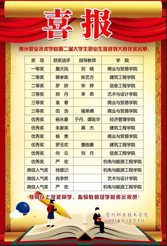 贵州职业技术学院第二届大学生职业生涯大赛--喜报